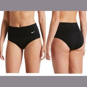 Displaying the Nike® swoosh, these swim bottoms feature a high waist style for maximum comfort and support.