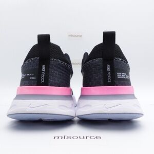 US Size 10 Men's Nike React Infinity Run FlyKnit 3 Running Shoes DZ3014-001 Black/Football Grey/Pink - New without box.