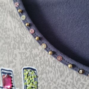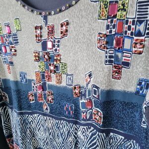 Women's Large pullover, long-sleeve top. Decorated and embellished with rhinestones, beads, and more!! The design is abstract or geometric!!