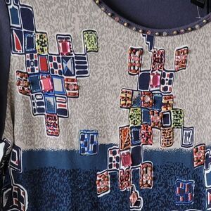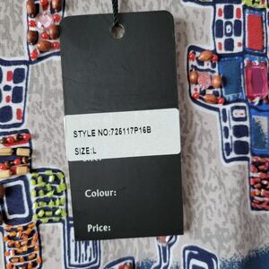 NEW Nikky Collection Large Top Beaded Rhinestones Abstract long slv Cotton NWT