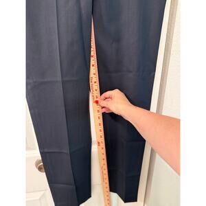99% virgin wool, 1% elastane. Dry clean only. Zip fly with hook and bar closure. Side seam pockets. Back slip pockets. 14" at the knee narrows to 12" at the leg opening. New without Tags.