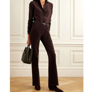 NEW! Nili Lotan 6 Corduroy Flare Leg Pants Cotton High Rise Dark Brown Espresso