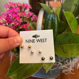 NEW Nine West tri tone set of ball stud earrings