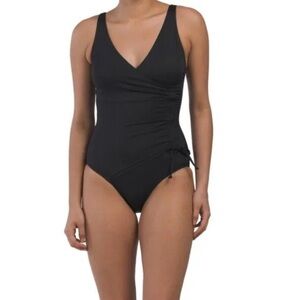 Drawstring Tie: this one piece swimsuit has a front drawstring tie which can be adjusted to create more or less of a gathered, ruched