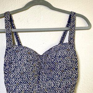 NEW Niptuck One Piece Ruched Swimsuit in Nautical Foil Navy Blue and Gold, Size 4.