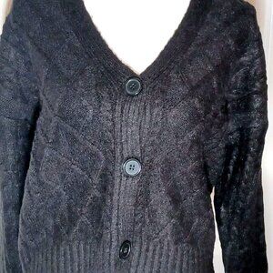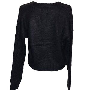NEW No Comment Black V-Neck Cable Knit 3 Button Cardigan Sweater Size L