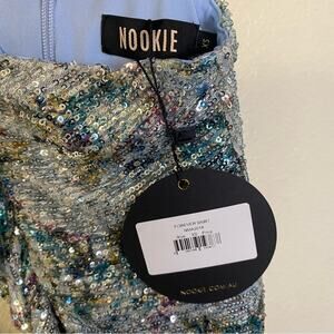 NEW Nookie Forever Mini Skirt Blue Sequin Ruffle NWT Size XS