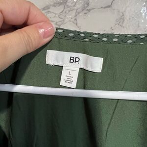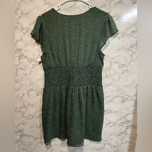 NEW Nordstrom BP Olive Green Print V-Neck Mini Dress Smocked Waist Cap Sleeve L