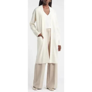 NEW Nordstrom Wool Cashmere blend Long Cardigan Ivory Size S