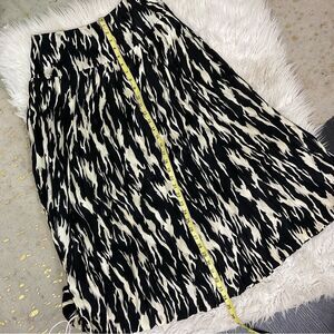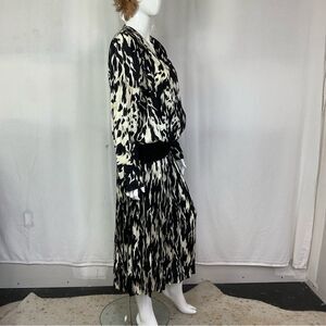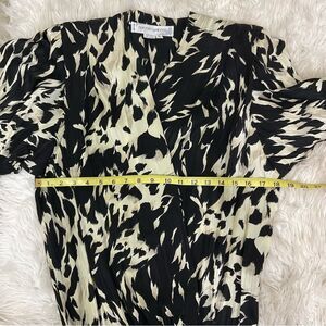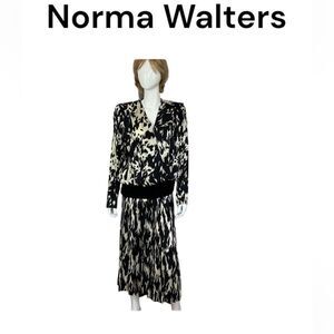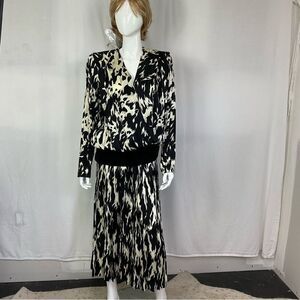 Norma Walters Woman’s 100% Silk Vintage 80’s Black And Cream Print Surplice V-Neck Long Sleeve Top & Midi Skirt Size 10