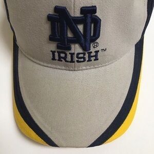 NEW - Notre Dame Irish Football Hat Cap Starter Licensed Adjusts Navy Gray Gold. Still has the cardboard inside.