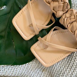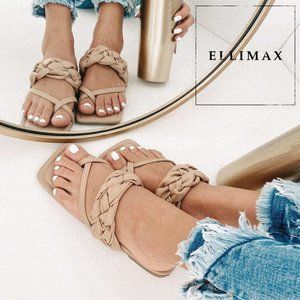 NEW🔥 Nude Woven Open Toe Loop Flat Slide Sandals