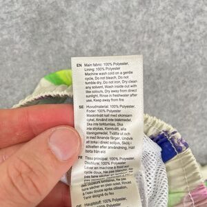 Men's Brand new with tags OAS Flower Shop Swim Short Multicolor Floral Elastic Waist Drawstring Mesh Lined Pull On Vacation Athletic Swimming Trunks, Made in Sweden. Style 5001-314. 100% polyester.