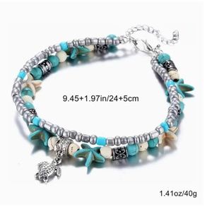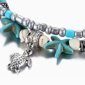 NEW OCEAN BEACH SEA TURTLE CHARM RICE BEADS STARFISH ADJUSTABLE ANKLE BRACELET