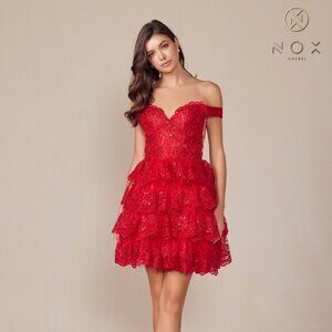 NEW OFF SHOULDER RUFFLED COCKTAIL RUFFLED DRESS W/ SWEETHEART NECKLINE NX R877