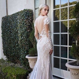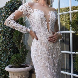 NEW OFF SHOULDER WEDDING DRESS WITH LONG SLEEVES EMBROIDERED WITH LACE AL A1022