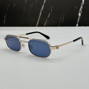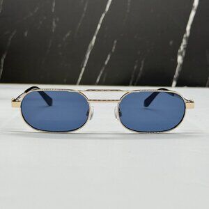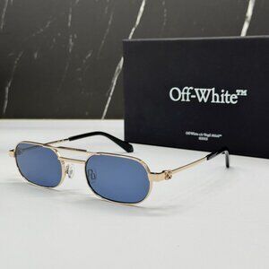 NEW OFF-WHITE OERI123 VAIDEN 7645 SUNGLASSES OVAL GOLD BLUE WOMEN EYEWEAR