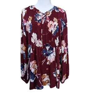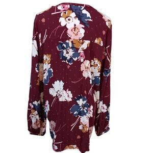 NEW OLD NAVY Burgundy Floral Boho Peasant Top Blouse Tunic Large Flowy Tucks