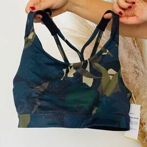 NEW OLD NAVY Camo Printed Green Black Cross Strappy Workout Gym Sports Bra M