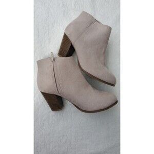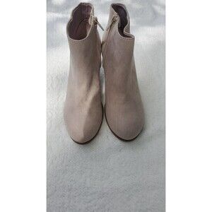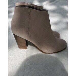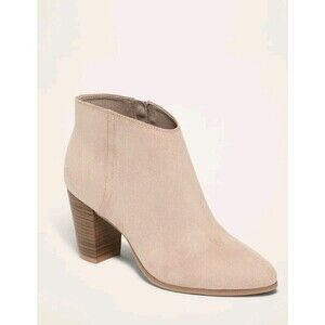 NEW OLD NAVY Size 7 FAUX SUEDE LEATHER HIGH HEEL BOOTIES SAGE Beige ANKLE BOOTS