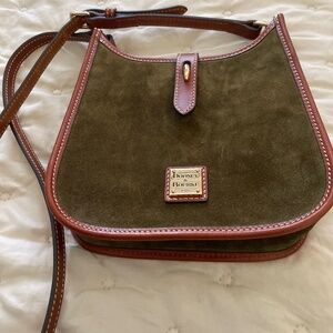 NEW OLIVE Dooney & Bourke Suede Messenger Crossbody Purse Bag Green Brown no tag
