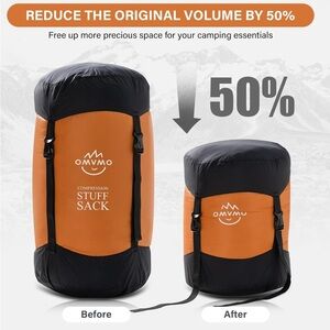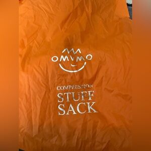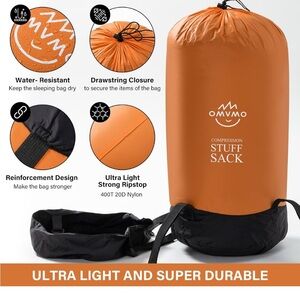 OMVMO compression stuff sack in vibrant orange. Ideal for packing and organizing.