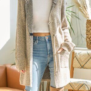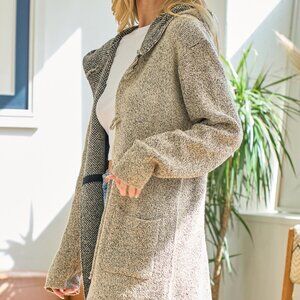 NEW ON BLUE SWEATER CARDIGAN blazer coat XS-LG hooded Heather brown shabby chic