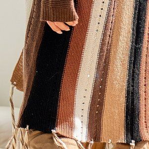 NEW ON BLUE bohemian western duster cardigan sweater stripe SM-XL Choco fringe