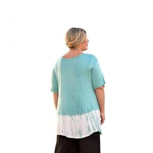 Tie-dye. Slight high-low hem. Relaxed fit. Multicolor. Short sleeve.