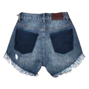 NEW ONE TEASPOON Hawks Distressed Blue Wash Raw Hem Denim Cutoffs Jean Shorts 24