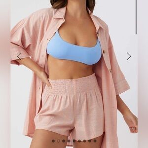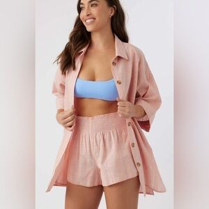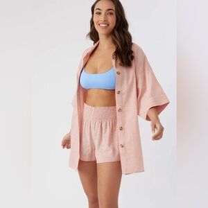 Light and flowy oversized top that has a front button design, side seam slits and allover print.