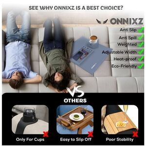 ONNIXZ Couch Cup Holder Tray, Silicone Anti-Spill & Anti-Slip Sofa Arm Tray, Strong Couch Tray