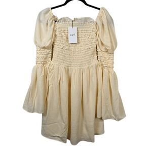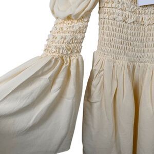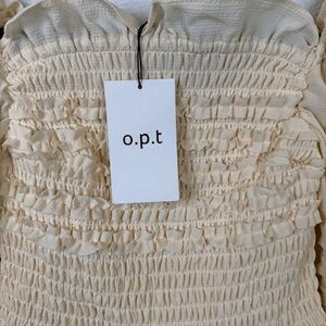 NEW! O.P.T. Luanne Dress Dark Cream Smocked Peasant Mini Dress Lined Size XS. This item is new boutique and still in manufacturers polybag. Brand New and Excellent condition. See photos for details and unstretched measurements. Shop my closet for even more NWT Designer Apparel and quality preowned apparel and bundle multiple items for discounts and one shipping fee! The o.p.t Luanne Dress is a peasant-style mini-dress known for its smocked detailing and summery, casual look. It is made from a mid-weight, non-stretch cotton-spandex blend. Fabric: Mid-weight, non-stretch textured weave. Lined. Color: Yellow cream.