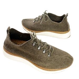 NEW OTBT Shoes Soft Wool Suede Leather Cork Platform Sneakers 9 Olive Green