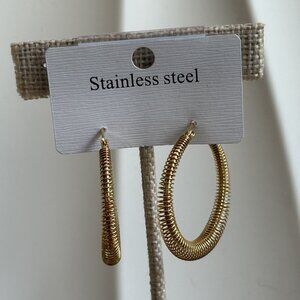 NEW Oceanus Gold Stainless Steel Hoop Earrings Coiled Wire Round Spiral Design