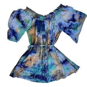 UMGEE NEW Off Shoulder Tie Dye Dress Women Medium Tunic Blue Green Bell Sleeve Country Chic