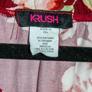 Off-The-Shoulder Floral Print Blouse - Krush brand, size medium, maroon/burgandy with large pink floral print, 3/4 sleeves with tie detail. *NEW* mint condition Never warn !!