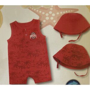 NEW Ohio State Buckeyes Colosseum Red Palm Trees Romper Hat Set Boys 6-12 M
