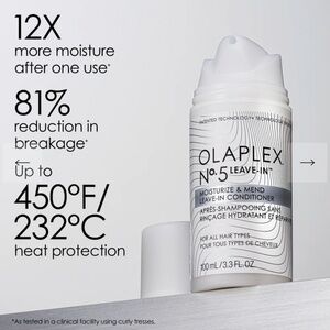 What it is: This moisturizing leave-in provides instant results and continuous repair and protection from cortex to cuticle. No.5LEAVE-IN immediately seals split ends and promotes visibly healthier hair after one use. Go beyond hydration with OLAPLEX Bond Building Technology™ and High-Adhesion Sealing Complex.
