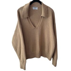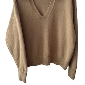 NEW Old Navy Preppy Old Money Open Collar V-Neck Sweater Camel Color Size XL