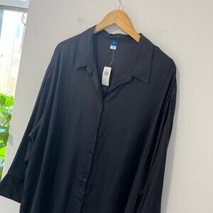 NEW Old Navy Silky Black Long Sleeve Button Up Blouse Size 3X