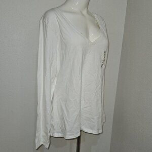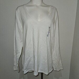 NEW Old Navy Tee Long-Sleeve Shirt V-neck White Size XL READ AS IS