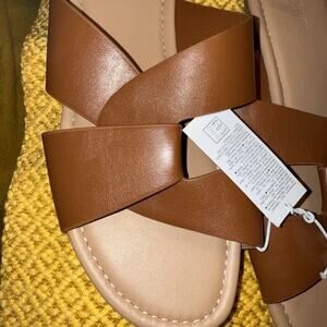 NEW Old Navy Women's Faux Leather Link Strap Sandals - Cognac Brown - Size 9
