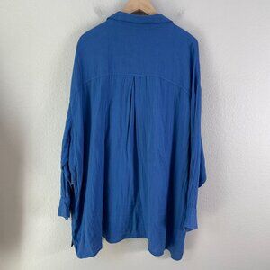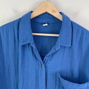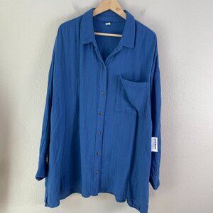 NEW Old Navy Womens Plus 3X Blue Button Up Shirt Cotton Gauzy Relaxed Fit Top