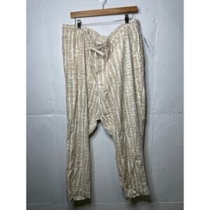 Old Navy Womens XXL Linen Blend Pants Drawstring Cream Tan Print Pockets