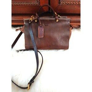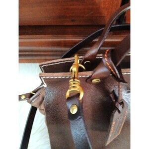 The NEW Old Trend Modern Vintage 100% Genuine Leather Mini Crossbody Satchel is a stunning and timeless handbag, perfect for travel, casual outings, and business. Crafted from a dark cognac leather with brass hardware accents, this mini satchel features a top zip closure, double top handles and a detachable crossbody strap for added convenience. The bag is lined with a canvas fabric and includes inner pockets for organization. With a classic designer theme and eco-friendly materials, this crossbody satchel is a must-have accessory for your wardrobe! New without tags!
