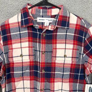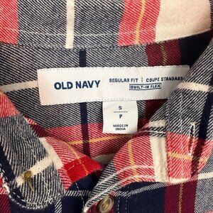 NEW Old navy Plaid Button Up Mens small Flex Blue Red Long Sleeve Shirt