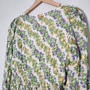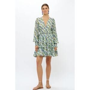 NEW Oliphant Smocked Waist V-neck Mini Dress Lupina Peri Floral Long Sleeve, S