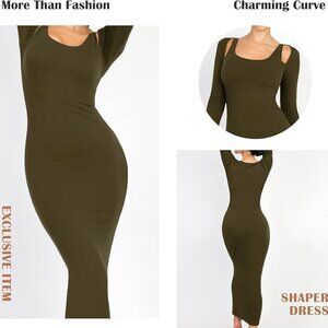 NEW! Olive Cutout Maxi Dress w/ built in bra + shapewear lining! MEDIUM
