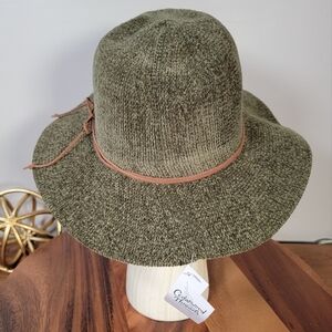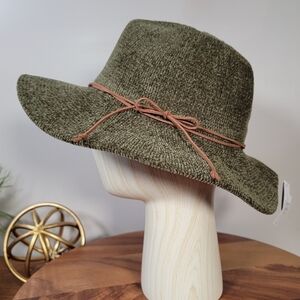 NEW Olive Green Soft Floppy Hat Womens One Size Brien Faux Leather Trim Boho